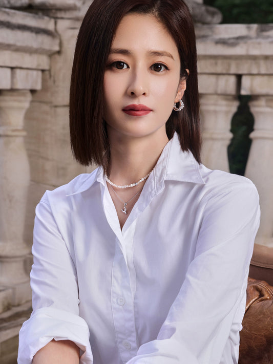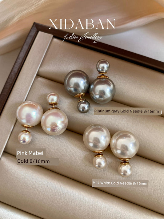 D's Classic Front and Rear Dual-Wear Zhao Lusi Same Style Double Beads Shijia Pearl Earrings Female French Entry Lux 925 Silver Earrings