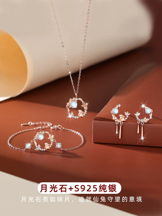 Original Cute Rabbit Girl Chinese Fad New Year Moonstone Earrings