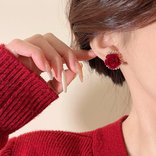 Ankela Red Flowers Bead Stud Earrings for Women Accessible Luxury Fancy Elegant Unique Earrings New Arrival 2024 Best Selling Earrings