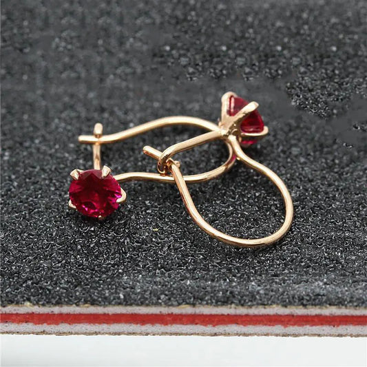 585 purple gold plated 14K rose gold inlaid ruby earrings for women sweet light luxury fashion jewelry to send girlfriend