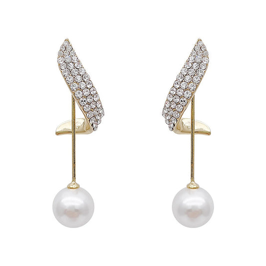 2 fashionable and gorgeous women's long diamond inlaid pearl geometric earrings, party and dinner party accessories