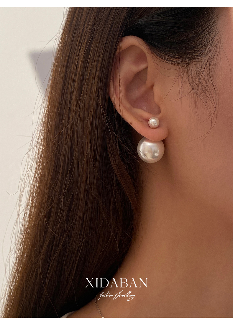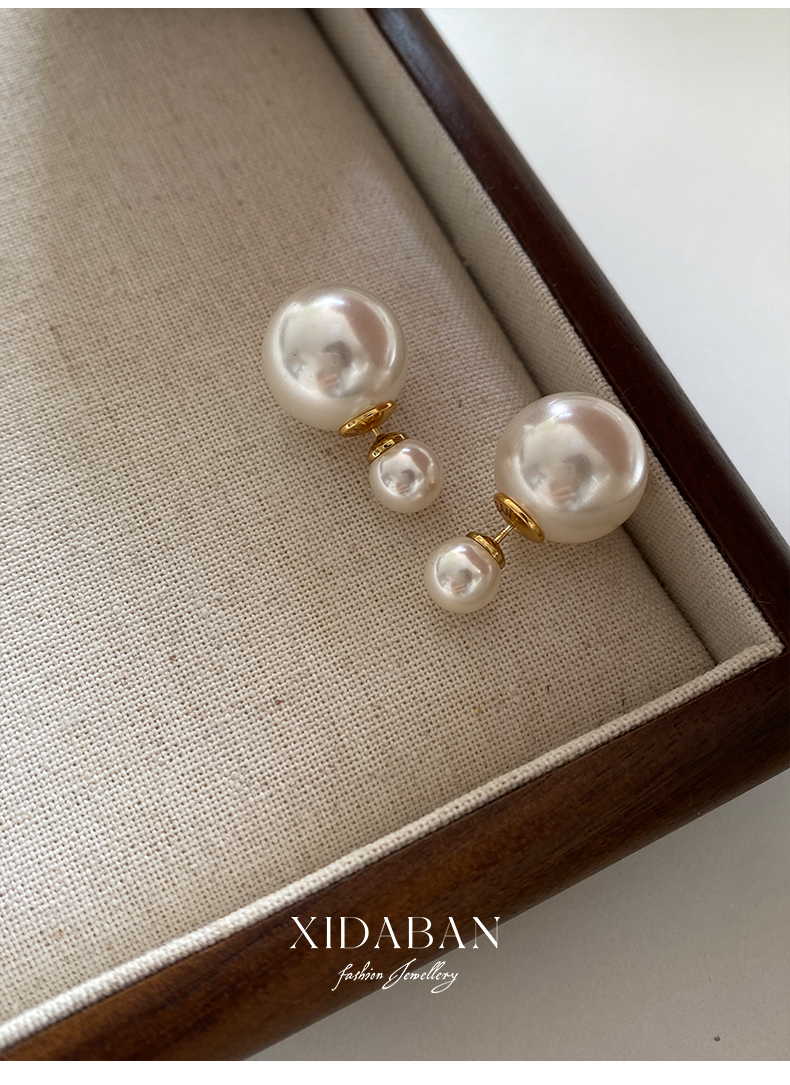 D's Classic Front and Rear Dual-Wear Zhao Lusi Same Style Double Beads Shijia Pearl Earrings Female French Entry Lux 925 Silver Earrings