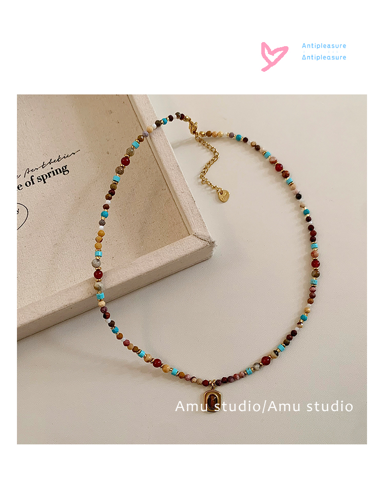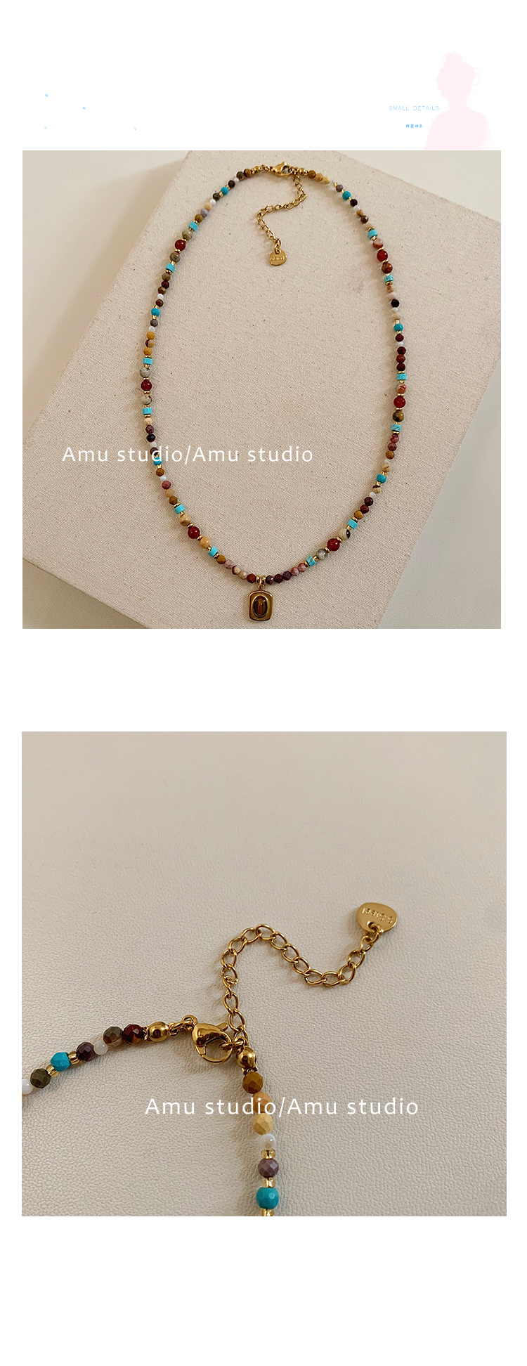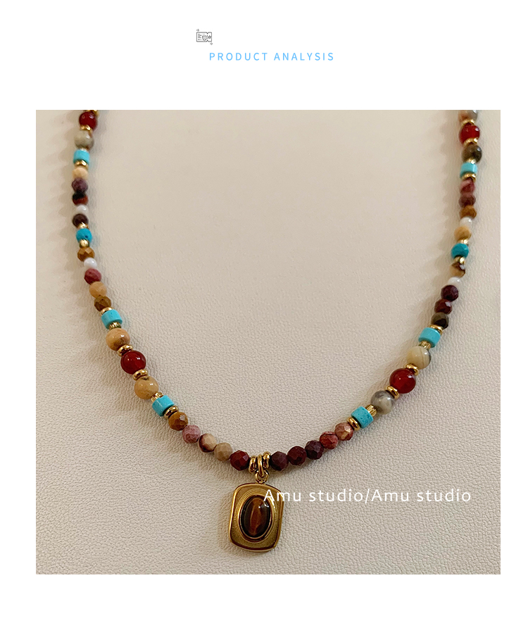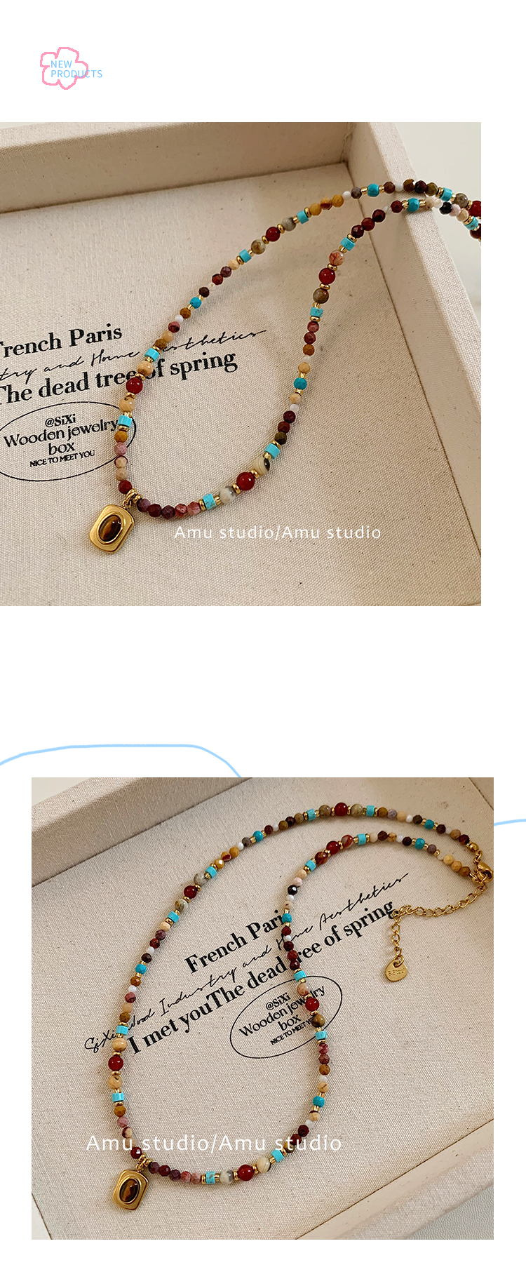Turquoise Cube Sugar Beaded Tigereye Titanium Steel Necklace for Women Fancy Accessible Luxury Niche Design Clavicle Chain Neck Chain