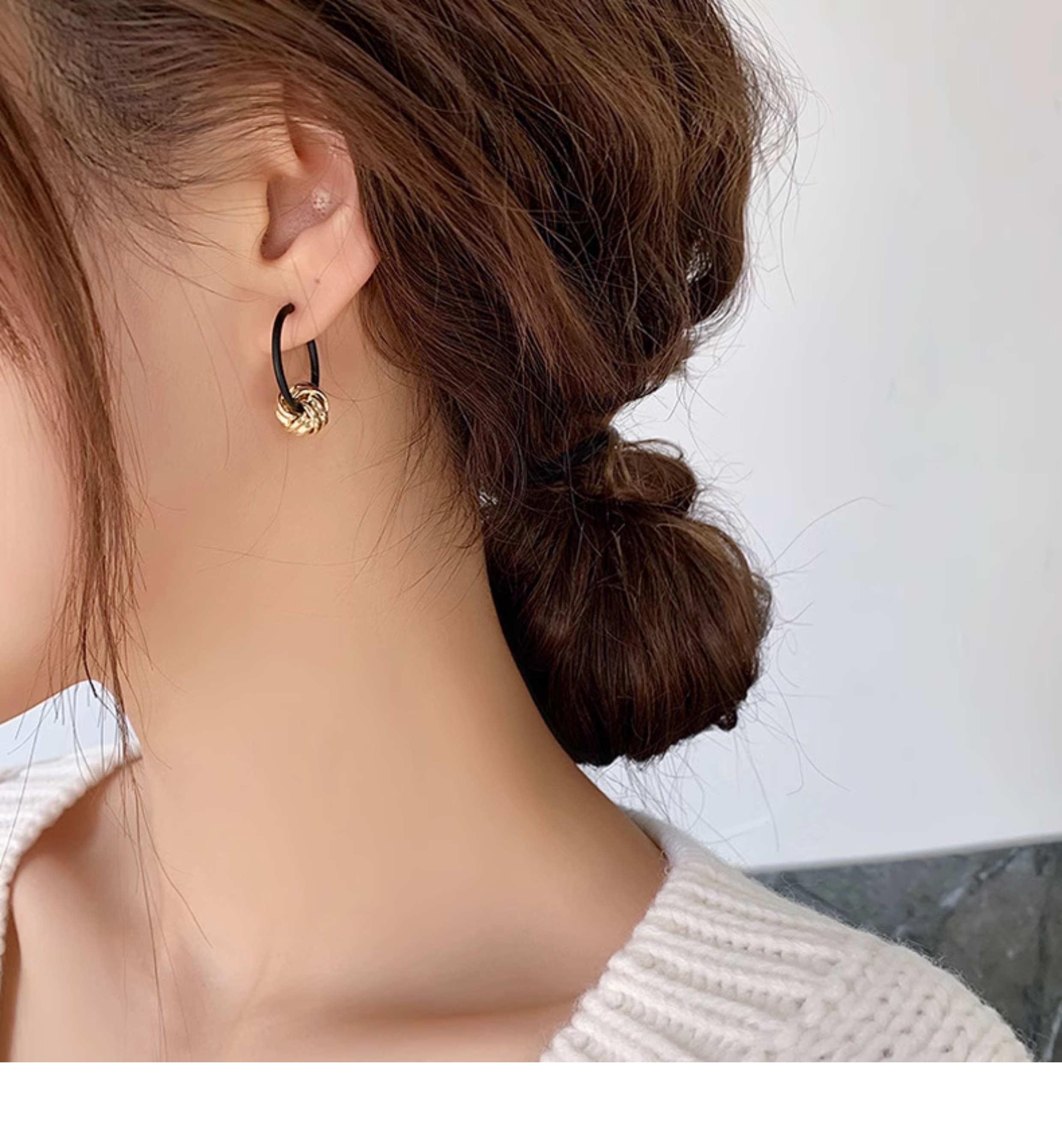 White Baihe Same Style Earrings Black Golden Ball Earrings Earrings 2024 Fall and Winter New Arrival Special-Interest Design Fancy Earrings